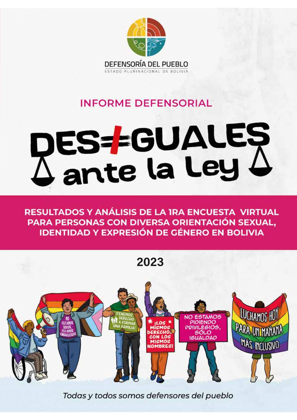 Título: Desiguales ante la ley, resultados y análisis de la 1ra encuesta virtual para personas con diversa orientación sexual, identidad y expresión de género en Bolivia