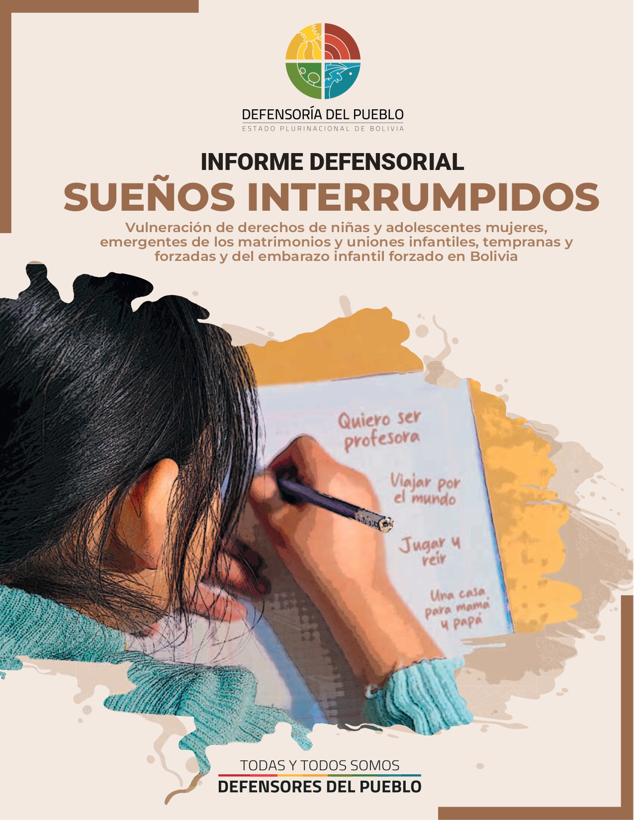 Título: Informe defensorial Sueños Interrumpidos: vulneración de derechos de niñas y adolescentes mujeres, emergentes de los matrimonios y uniones infantiles, tempranas y forzadas y del embarazo infantil forzado en Bolivia