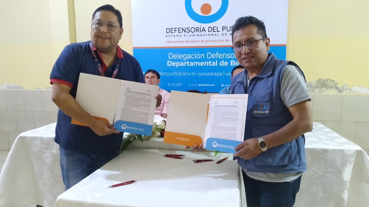 “Agradezco la renovación de los convenios con los hospitales y el nuevo convenio con el Seguro Social Universitario, que reflejan la confianza en la Defensoría del Pueblo y en nuestro trabajo por los derechos humanos. Este proyecto busca promover la convivencia pacífica entre pacientes y personal de salud”, afirmó Callisaya en el acto realizado en la Delegación Defensorial Departamental del Beni.