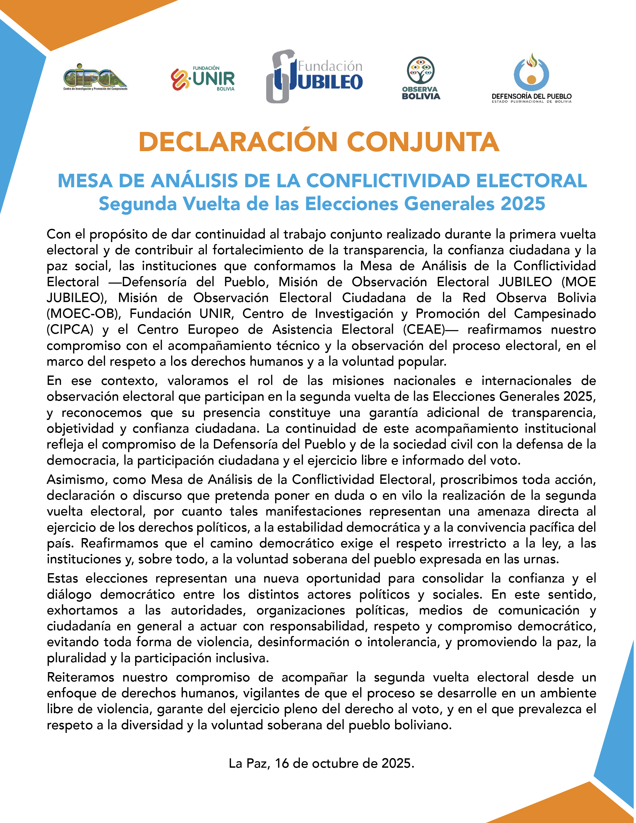 DECLARACIÓN CONJUNTA – MESA DE ANÁLISIS DE LA CONFLICTIVIDAD ELECTORAL