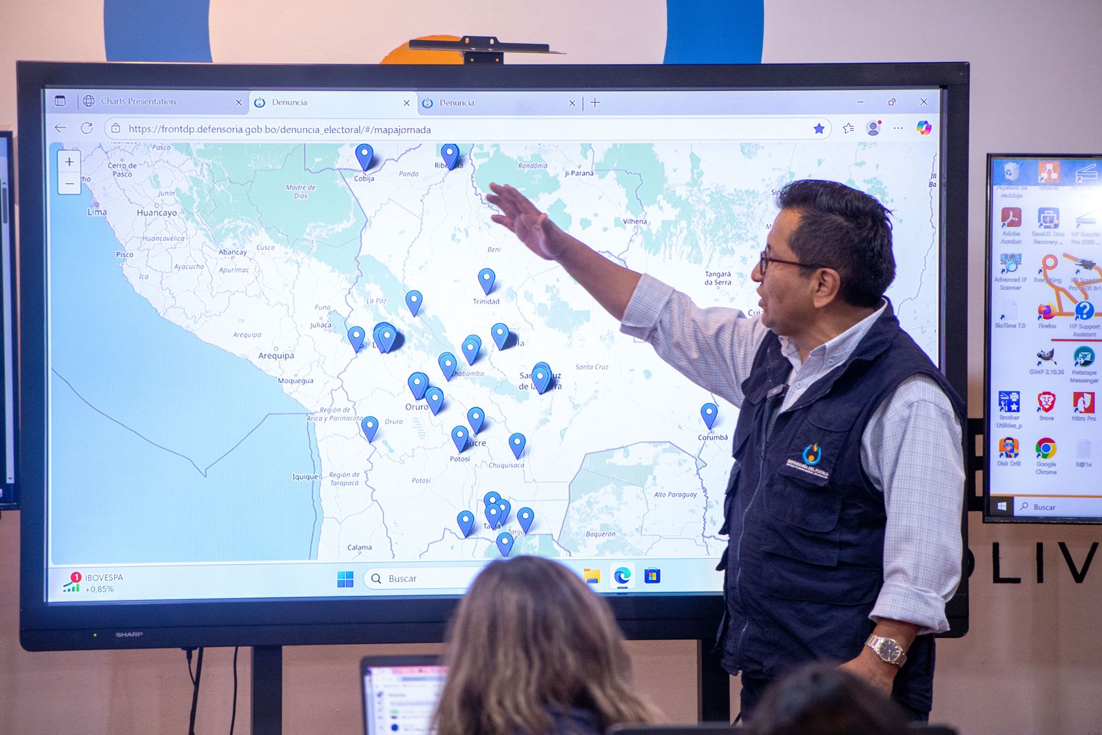Asimismo, destacó el despliegue de 200 servidores defensoriales y 700 defensores voluntarios que integraron el Centro de Monitoreo de Derechos Humanos, operativo desarrollado en todo el territorio nacional y en puntos del exterior como Lima (Perú) y New Jersey (Estados Unidos), para velar por el ejercicio libre y seguro del derecho al voto.
