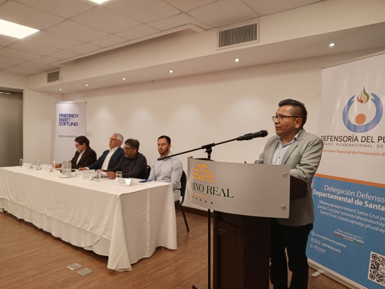 “Invito a los presentes a sumarse a este emprendimiento conjunto de la Defensoría del Pueblo y la FES (Fundación Friedrich Ebert Stiftung) para que todos nos constituyamos en actores reflexivos en la construcción de una democracia participativa, igualitaria e inclusiva; considerando que es el único camino para transitar la crisis que estamos viviendo en el país”, afirmó el Callisaya.