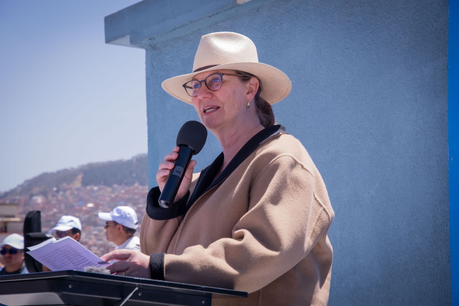 A su turno, la Coordinadora Residente de las Naciones Unidas en Bolivia, Anna Marttinen-Pont, destacó que el acto de izar la bandera de la Paz tiene un profundo valor, porque "nos recuerda que la Paz es un esfuerzo colectivo y que cada persona aquí presente tiene un rol que cumplir desde las decisiones en el ámbito público, hasta las actitudes en la vida cotidiana".