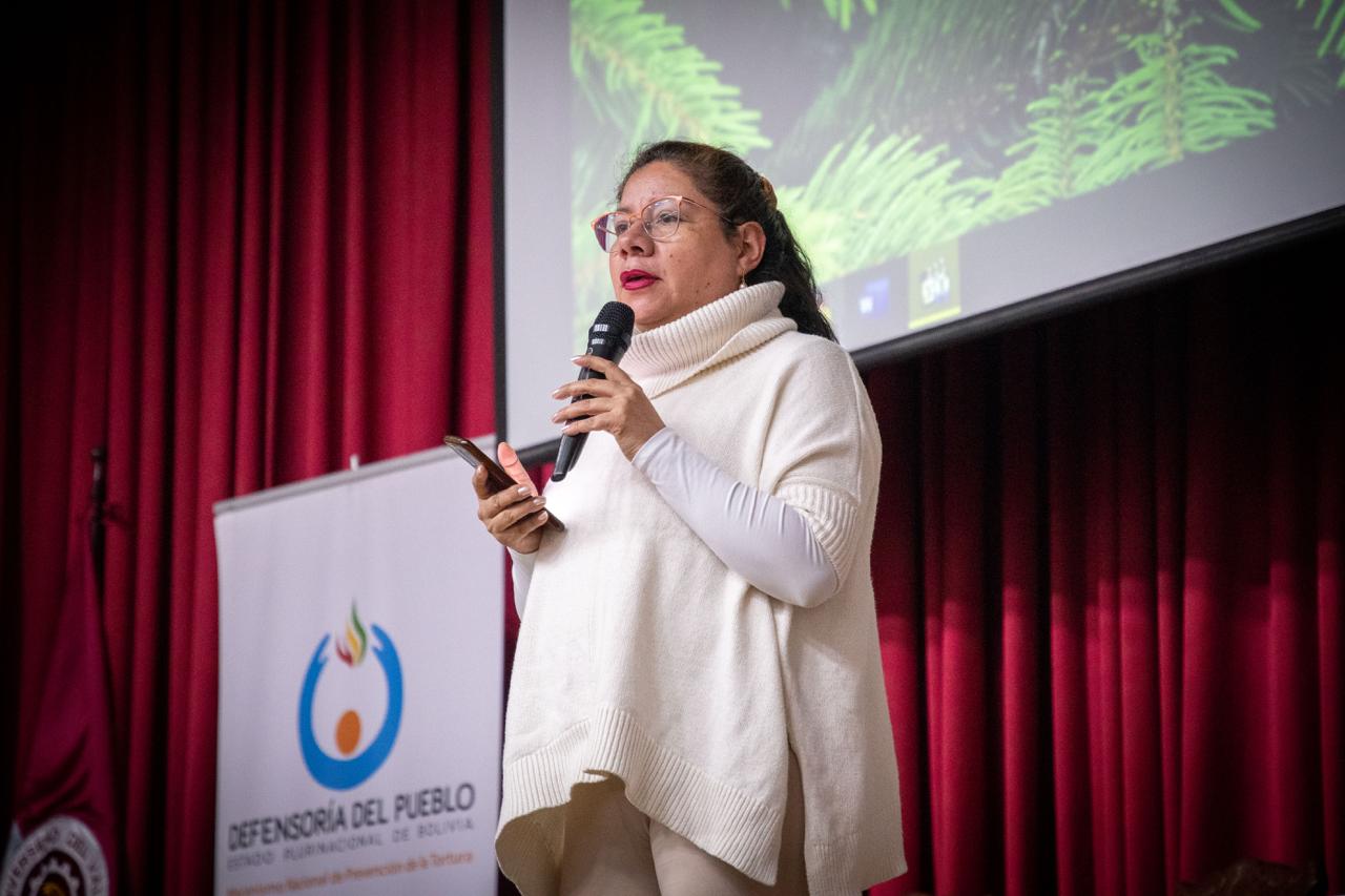 El evento se desarrolló en el auditorio de la Universidad del Valle (UNIVALLE) en La Paz y contó con la participación del Defensor del Pueblo, Pedro Callisaya; la representante de ONU Mujeres, Ivanna Fernández; de la Cancillería del Estado, Daniela Llanos; de la Fundación UNIR, María Soledad Quiroga; y de la Red Unitas Bolivia, Gabriela Ugarte.