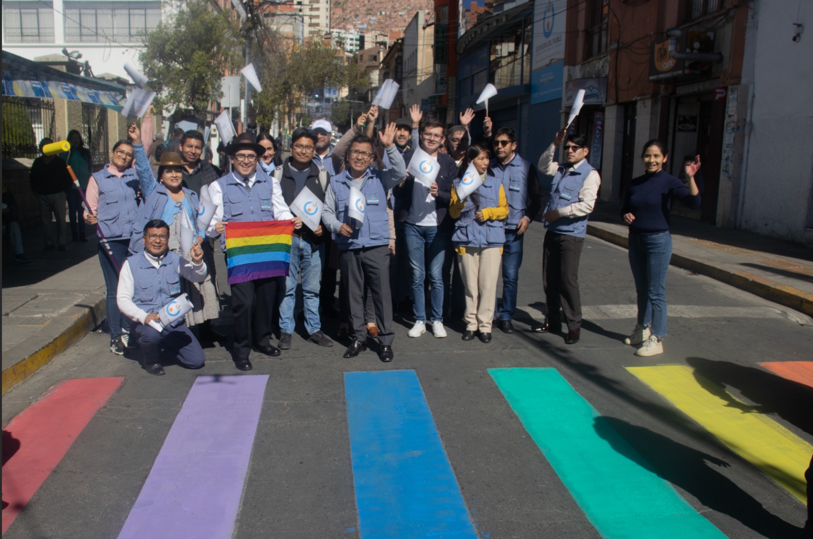 “La Defensoría del Pueblo está en permanente acción, en la exigencia de construcción de medidas de fondo, no solamente este día sino todos los días del año, para que, conjuntamente a toda la población LGBTI+, podamos construir y consolidar una sociedad con tolerancia, justa e igualitaria que nos permita recomponer nuestros escenarios de convivencia pacífica y armónica”, señaló Callisaya tras concluir el pintado del paso peatonal.