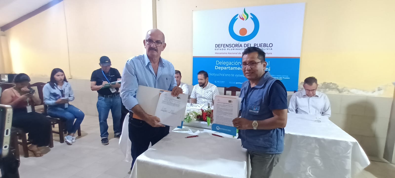 Trinidad, 24 de septiembre de 2025 (UCOM/DPB).– Con el objetivo de fortalecer la protección de poblaciones en situación de vulnerabilidad en el departamento del Beni, el Defensor del Pueblo, Pedro Callisaya, suscribió convenios de cooperación interinstitucional con los Gobiernos Autónomos Municipales de Trinidad, San Ignacio de Moxos, San Javier y San Borja. Estos acuerdos impulsarán procesos de capacitación y programas defensoriales con enfoque de derechos humanos.