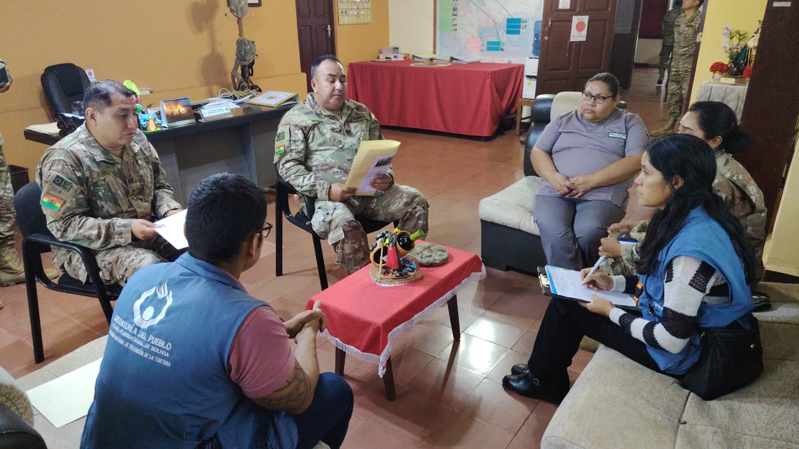 De manera inmediata, la Defensoría del Pueblo se reunió con los familiares de la víctima —quienes viajaron desde Potosí— para recabar su testimonio y ofrecer acompañamiento institucional. Posteriormente, la institución sostuvo una reunión con autoridades del Comando y el Inspector de la Tercera División del Ejército. Las autoridades castrenses informaron que están cubriendo los gastos de traslado, sepelio y alimentación de la familia, y que se inició un proceso sumariante para determinar con precisión lo ocurrido y habilitar los beneficios correspondientes. Además, confirmaron que el cuerpo fue velado y trasladado a Potosí, donde recibirá sepultura con honores militares.