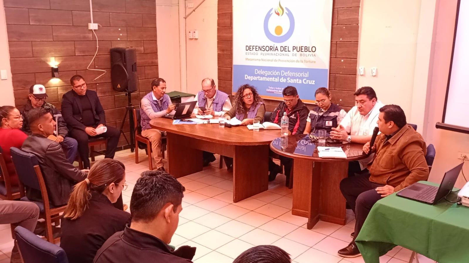 A la reunión convocada por la Defensoría del Pueblo, a través de la Delegación Defensorial Departamental de Santa Cruz, asistieron el Secretario Departamental de Salud y Desarrollo Humano, Secretario Departamental de Hacienda, Director de la Jefatura Departamental de Trabajo, y dirigentes del Sindicato de Trabajadores de Salud.