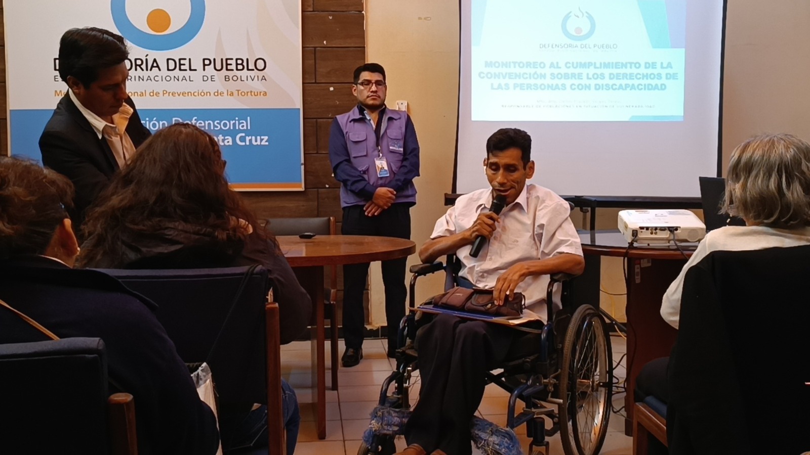 “Fue una actividad provechosa, que contó con la presencia de diferentes organizaciones que representan a las Personas con Discapacidad del departamento de Santa Cruz. En este espacio se realizó una evaluación de las normativas que protegen sus derechos y se coincidió en la falta de acciones por parte de las autoridades nacionales, departamentales y municipales para que esta población pueda ejercer plenamente sus derechos humanos”, manifestó Sheila Gómez Santivañez, Delegada Defensorial Departamental de Santa Cruz.